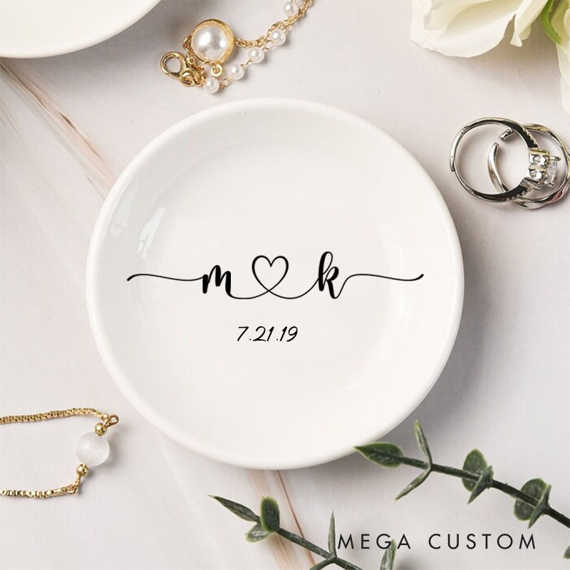 Personalized Heart-Connected Initials Engagement Monogram Engagement Round Ring Dish