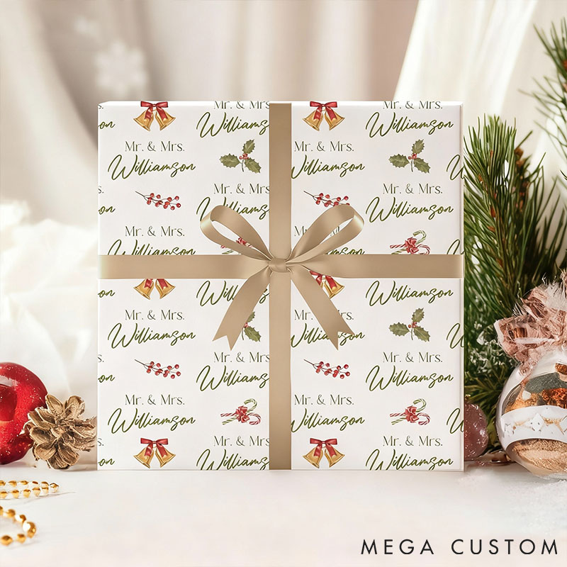Personalized Christmas Gift Wrap Custom Holiday Wrapping Paper for Couples Mr and Mrs Gift Wrapping Paper