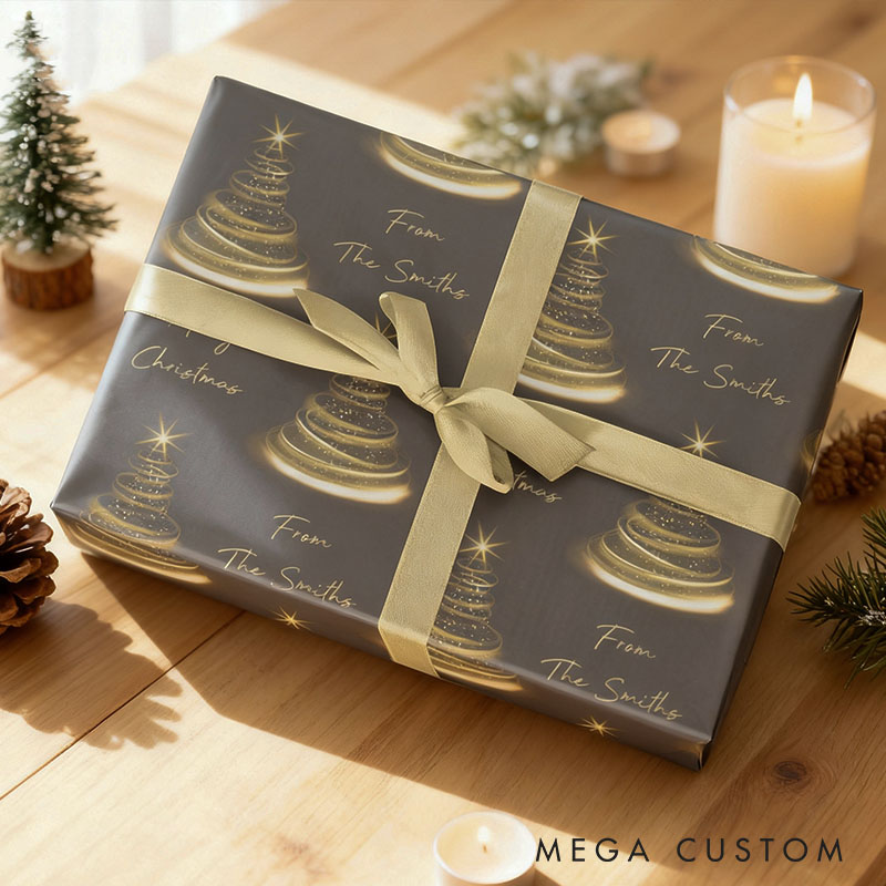 Personalized Gold Christmas Tree Wrapping Paper Custom Name Christmas Wrapping Paper Holiday Gift Wrap for Couple Girlfriend Wife Boyfriend Husband