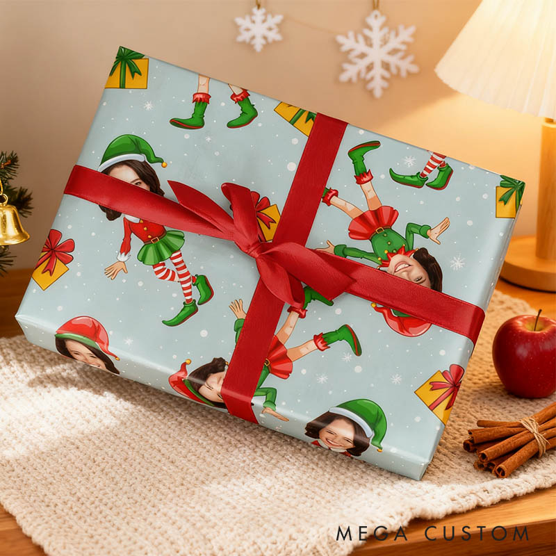 Personalized Funny Girlfriend Wife Photo Face Wrapping Paper Husband Boyfriend Elf Face Christmas Wrapping Paper Holiday Gift Wrap for Him Her