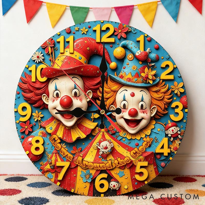 Personalized Couple Cheerful Clown Around the Clock Wall Clock Custom Vintage Circus Clown Wall Clock with Text Gift for Him Her Anniversary Gift