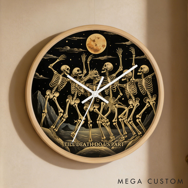 Personalized Skeleton moon dance Wall Clock Till Death Do Us Part Vintage wall decor Timekeeping Wall Clock for Him Her