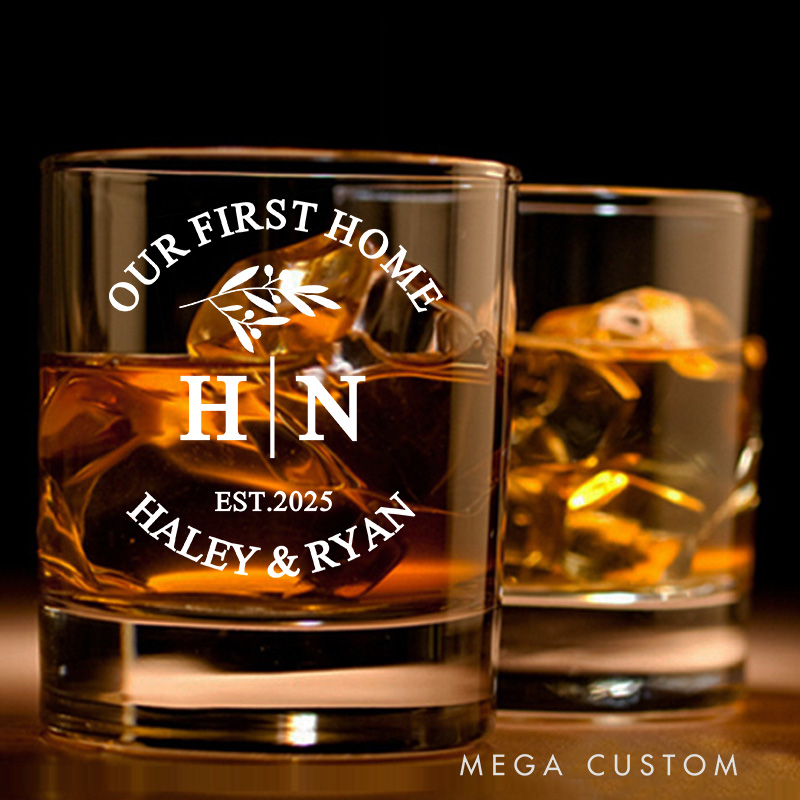 Personalized Our First Home Whiskey Tumblers Engraved His and Hers Initial Whiskey Glass Custom Design Glass Wedding Housewarming Gift New Home Gift