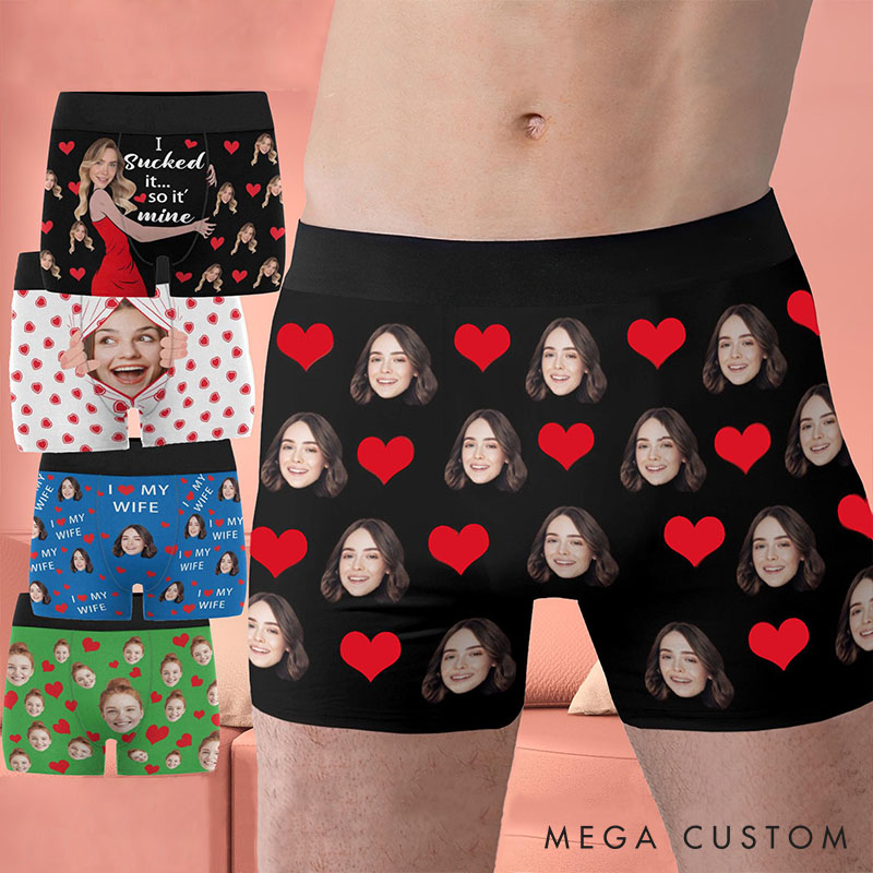 Personalized Girlfriend Wife Face Boxers Men Underwear with Women Face Photo Valentine's Day Gift for Boyfriend Husband Groom Wedding Gift from Bride