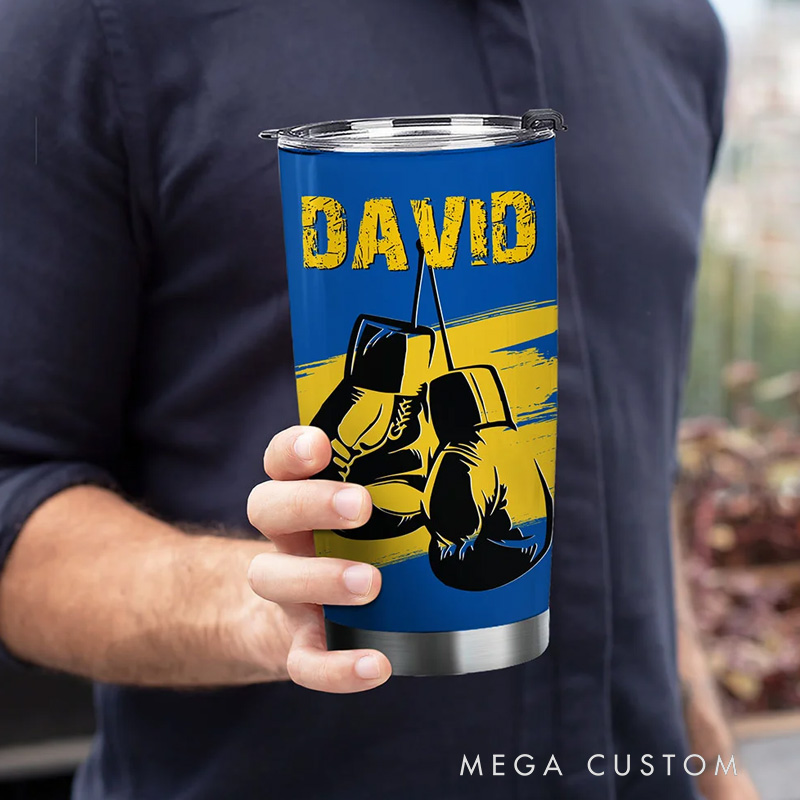 Personalized Fitness Tumbler Multicolour Boxing Glove 20oz Insulated Name Tumbler with Lid and Straw Birthday Gift for Sports Gym Boxing Lovers