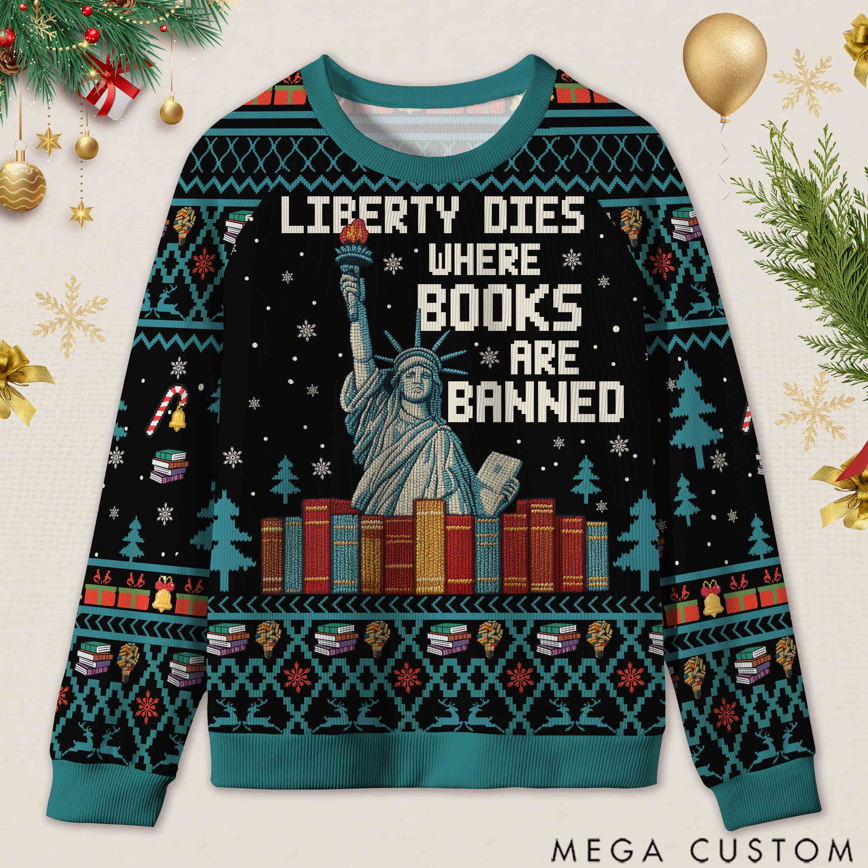 Personalized Freedom to Read Defiant Ugly Sweater Holiday Gift for Book Lovers