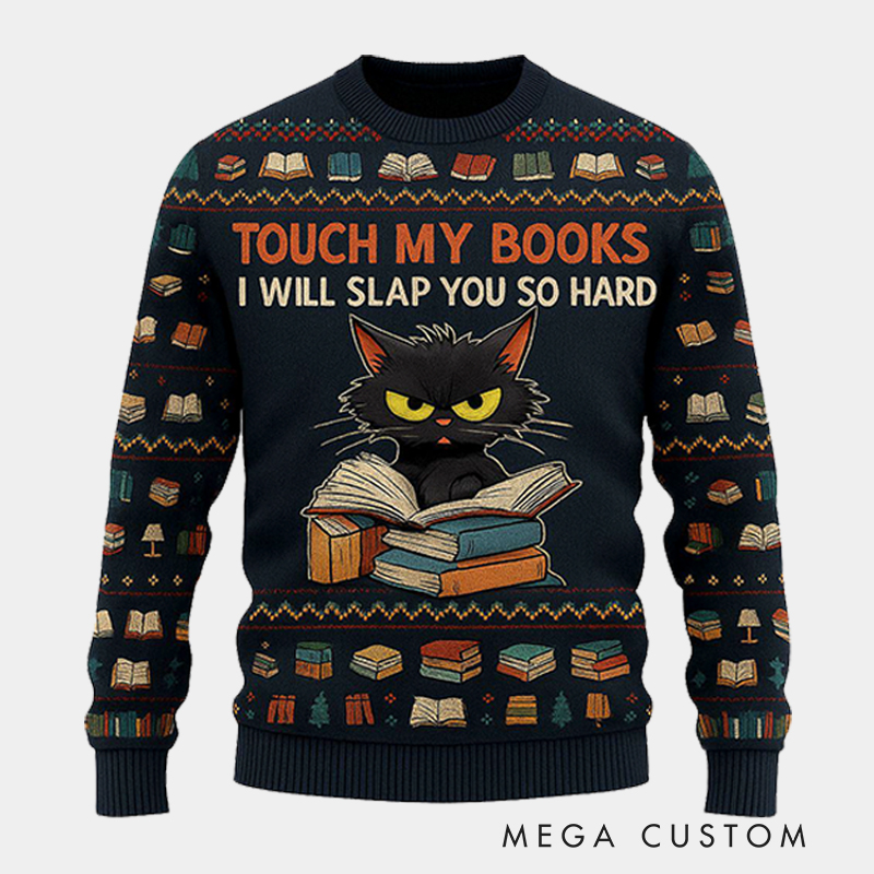 Personalized Fierce Cat Reader Ugly Christmas Sweater Gift for Librarians Book Enthusiasts