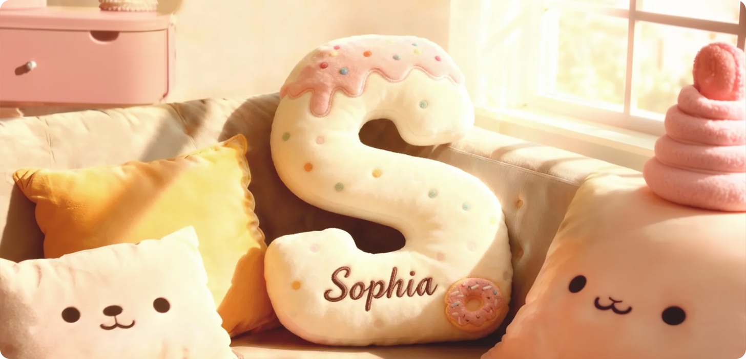 5. The Sweet Story: Personalized Donut Letter Pillow