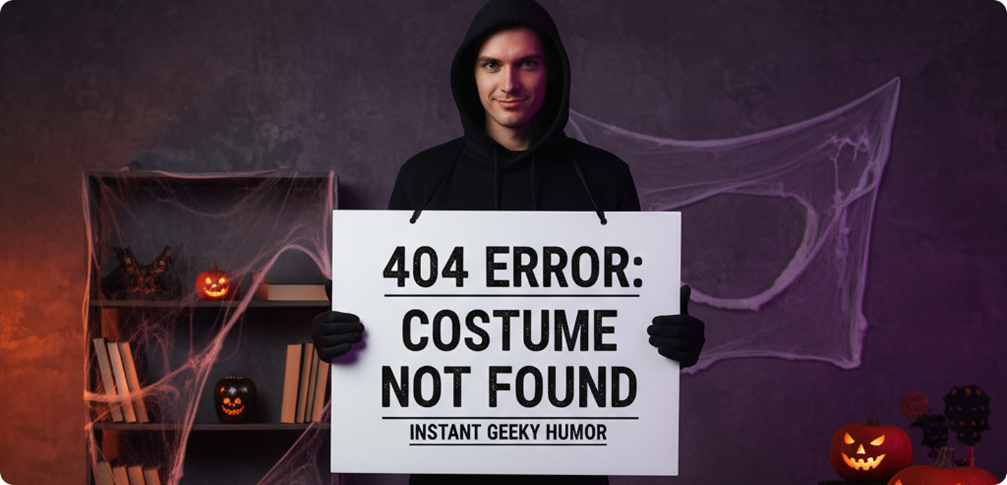 - A '404 Error' Costume: Wear all black. Attach a large, clearly printed “404 Error: Costume Not Found” sign to your front. Instant geeky humor!
