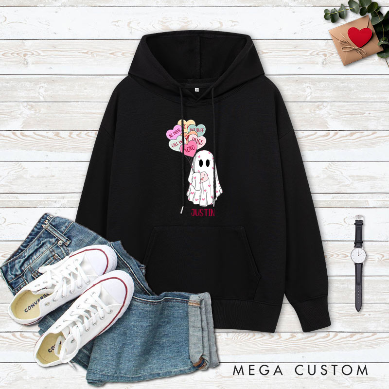 Spread love and cuteness with these adorable matching hoodies! Featuring a sweet ghost holding colorful heart-shaped balloons, these hoodies are perfect for couples who enjoy playful and romantic designs. Customizable with your names, they make a heartfelt gift for Valentine’s Day, anniversaries, or just to show your love. Stay cozy and let your love float high!