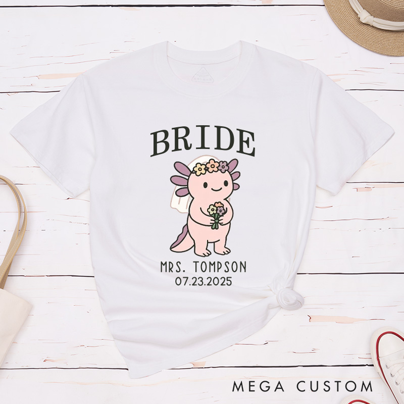 This charming design features a cute axolotl couple, with the groom in a tuxedo and top hat and the bride in a veil holding a bouquet. Playful and endearing, it adds a whimsical and unique touch to celebrate the couple’s special day.