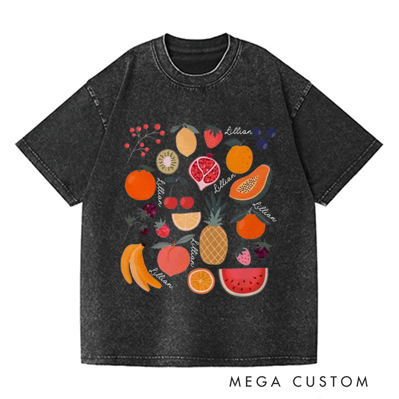 Personalized Cute Fruit Washed T-Shirts Garden Shirt Strawberry Shirt Pineapple Shirt Aesthetic Clothing Botanical Shirt Gift for Gardening Lovers