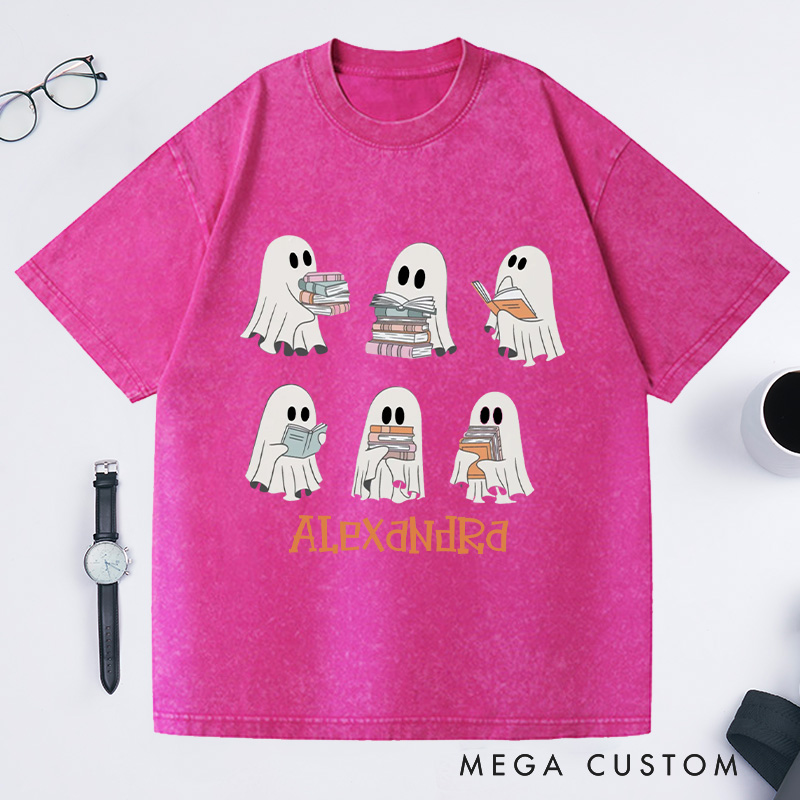 The design features six cute ghosts in various poses, each holding a book and immersed in reading. Their simple, vivid expressions complement the book details, adding humor and fun. This creative design cleverly blends ghost and reading elements, expressing a love for books. It's perfect for book lovers or those who enjoy unique, playful designs.