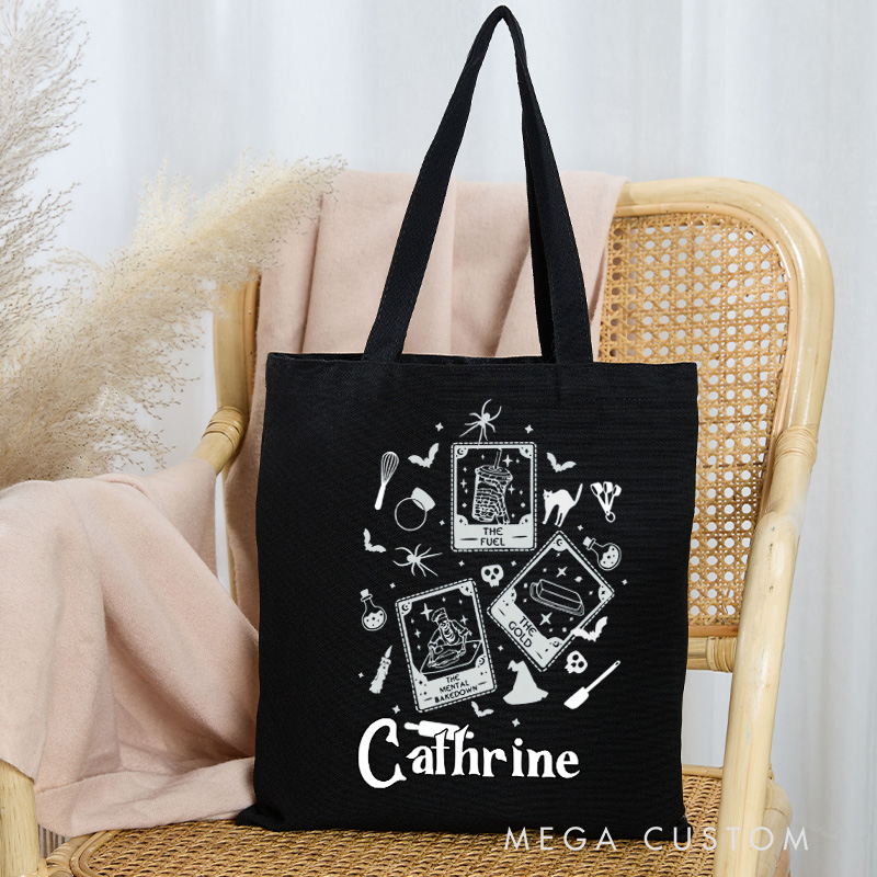 Personalized Halloween Baking Tote Bag Custom Bakery Canva Bag with Name Baker Tarot Card for Baking Lover Gift