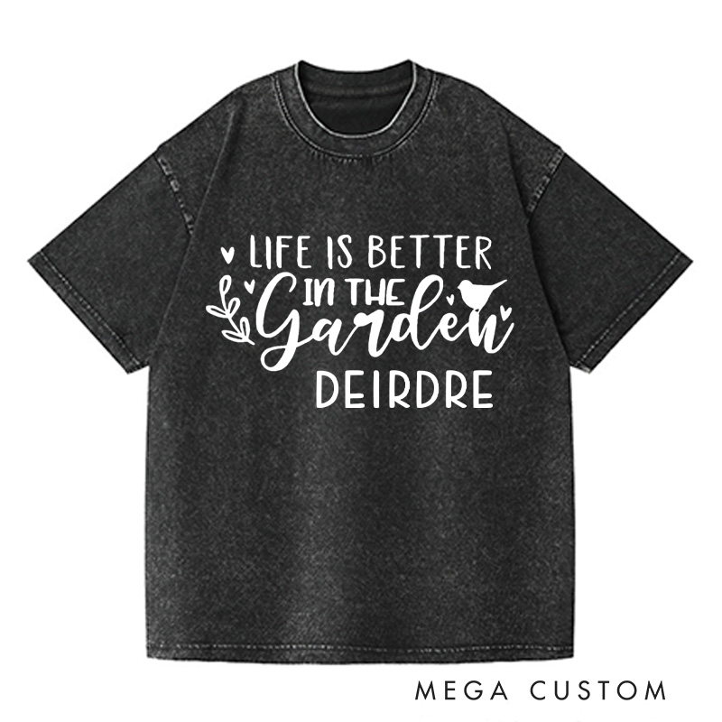 Personalized Life is Better in the Garden Washed T-Shirts Plant Lover Shirt Plant Lady Shirt Gardening Gifts for Women Garden Gift
