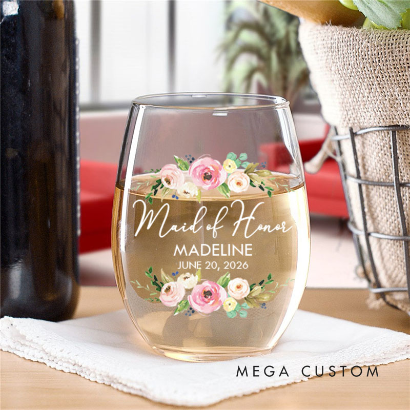 Toast to love and friendship with this elegant wine glass design! Featuring beautiful floral accents and personalized with a name, title, and date, it’s the perfect keepsake for brides, bridesmaids, or mothers of the couple. A stylish and meaningful gift for weddings, bridal showers, or any special celebration!