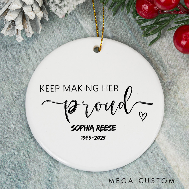 This personalized memorial ornament is a heartfelt tribute, thoughtfully and beautifully designed to honor the cherished memory of a loved one who has passed. Crafted with care, it serves as a meaningful keepsake, offering comfort and a lasting reminder of the love and connection shared, even in their absence.